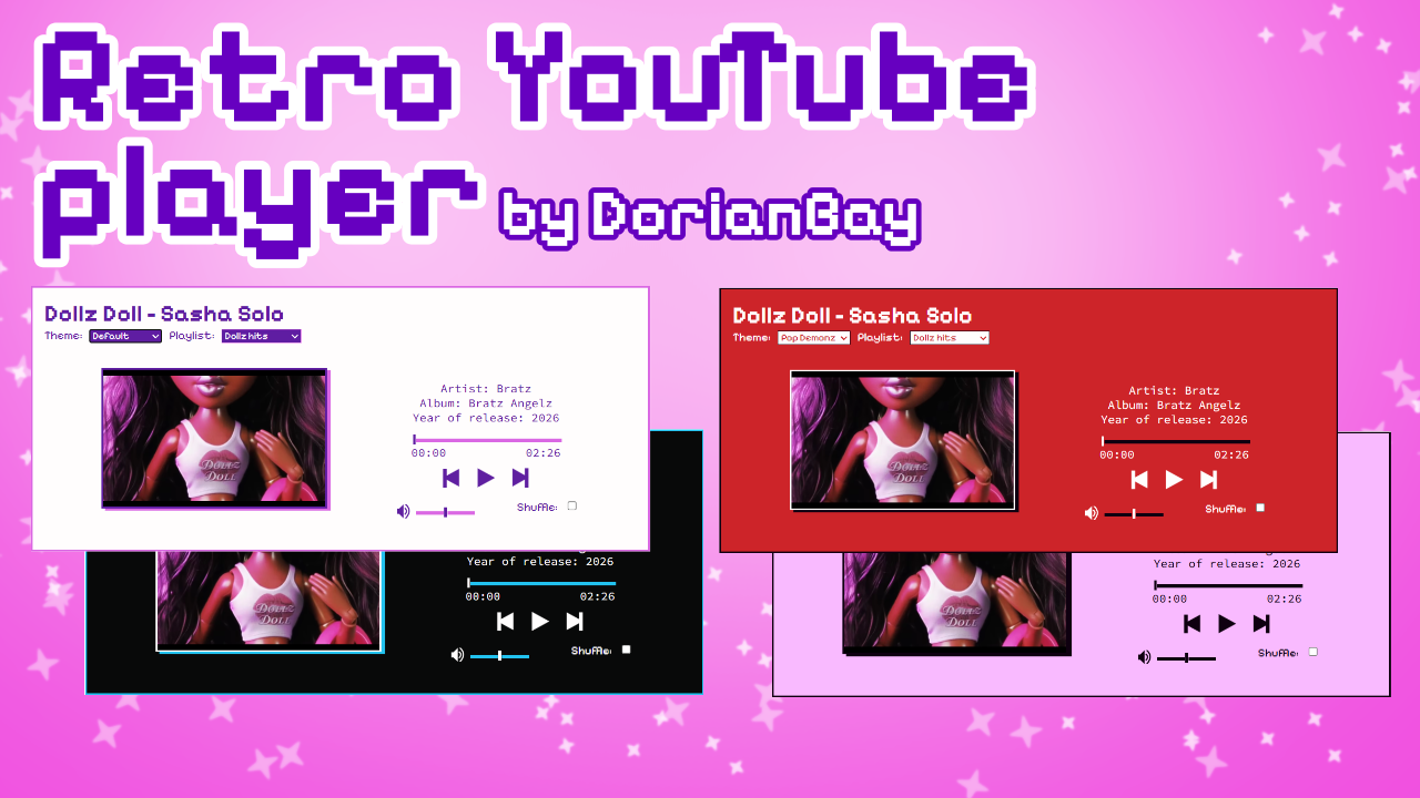 I made a retro-looking YouTube player for personal websites! It is coded fully in JavaScript, HTML, and CSS and is fully responsive for mobile devices.