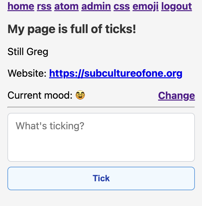 though I took a peek at the RSS and you have <link rel="alternate" type="application/rss+xml" title="Tick RSS" href="/tkr/rss/">