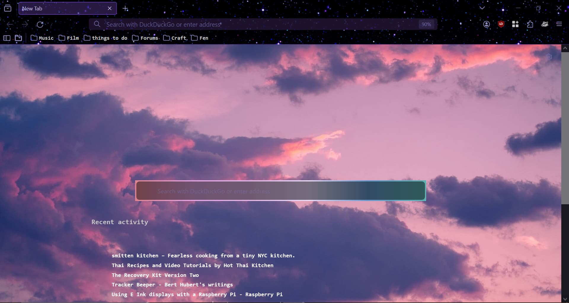 I discovered you can edit the firefox New Tab css, as well as the browser as a whole (such as the toolbars) with CSS, and started work on my own browser theme.